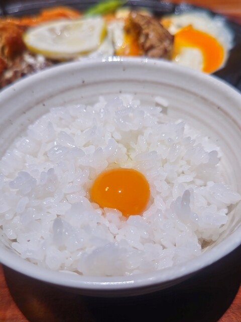 一粒一粒が立っていてつやつや、そこに卵黄がぽんっとのった様子はもはや芸術。