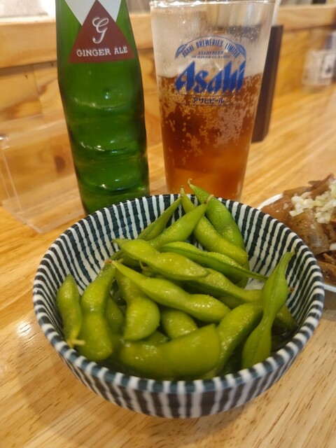 枝豆は茹でたてで、シンプルながら酒の肴として申し分ない。