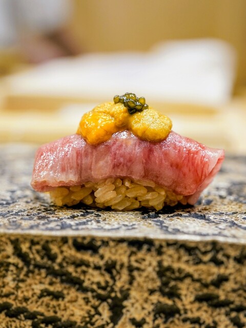 和牛雲丹キャビアは、和牛の甘みと雲丹のコク、キャビアの塩気が重なり印象的でした。