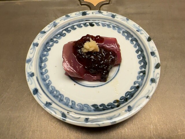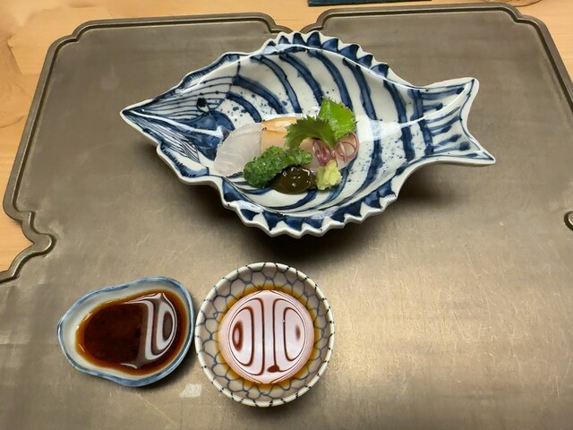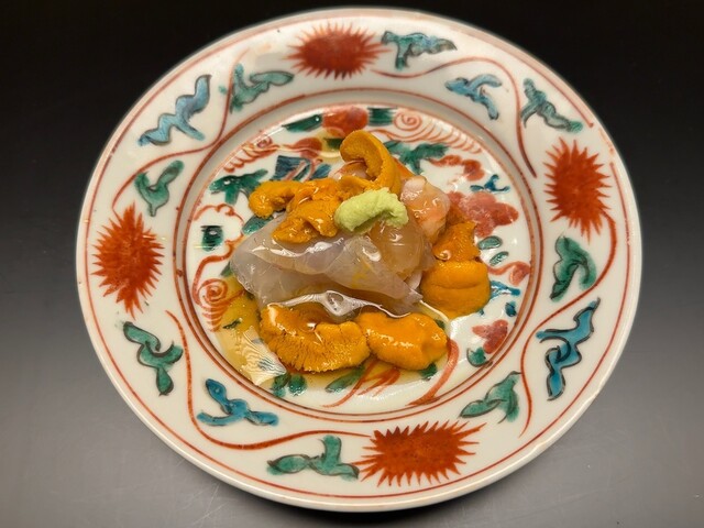 伊勢海老の炭火焼きと伊根のマグロ 海老味噌を溶いたポン酢