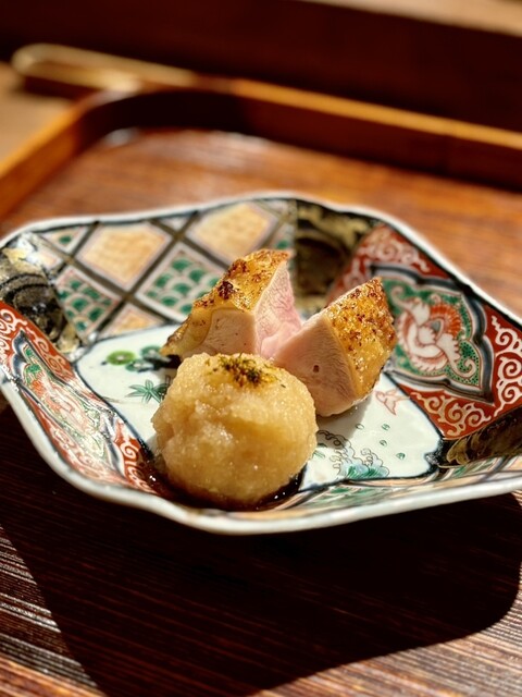 コースの〆は土鍋に炭となった薪をいれて香りをつけた