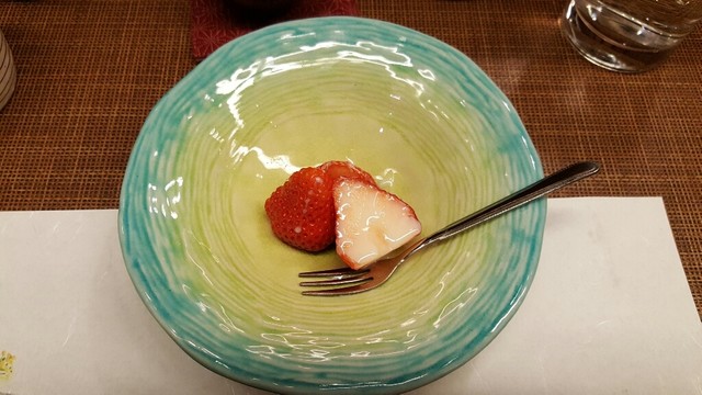 うん、そばつゆは鰹が効いた旨味がメインです。蕎麦はとつゆは本当に難しいですよね。もう少し蕎麦は冷水で締めてもらった方が良かったかな!最後にあまおうが出てきてご馳走さま。