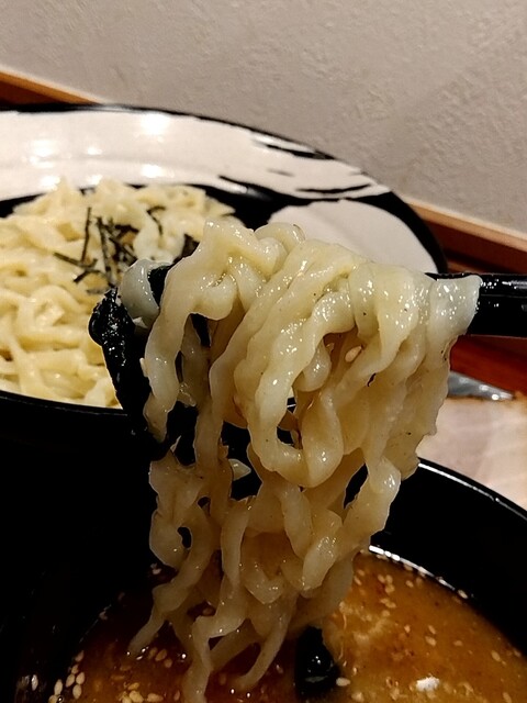 つけ汁に浸してリフト⤴️すれば「縮れ」が微妙に入った麺に「味噌スープ」が絶妙なバランスで絡んで旨し❤️