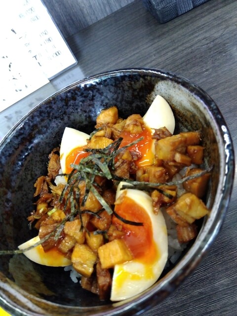 「肉玉めし」リフト⤴️タレが染みたコロコロチャーシューと味わい濃い味玉との組み合わがなかなかな一品(^o^)v