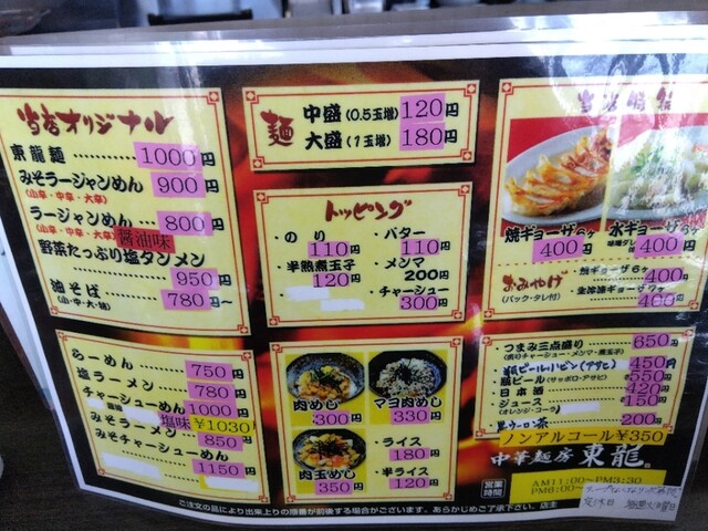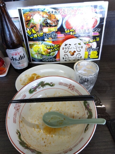 中華麺房 東龍 名取店③〜らーめん730円+水餃子380円+肉玉めし330円+ビール(中瓶)サッポロ520円
