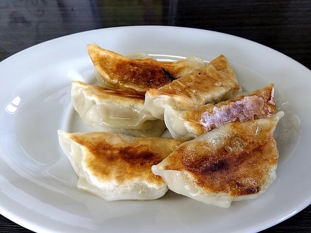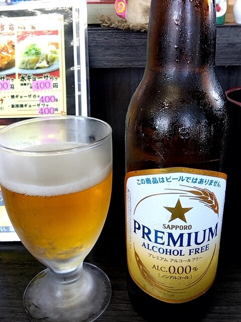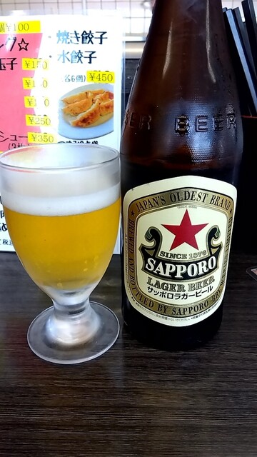 とはいえ、やはり歩くと暑い(@_@;) そこで先発は「サッポロラガービール中瓶」と「水餃子」で一杯❗️