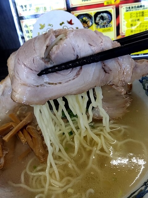 麺リフト⤴ 細麺に塩味スープが絡んで旨し(๑´ڡ`๑)