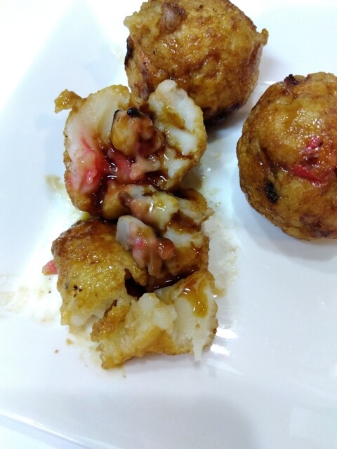 割ってみると、モッチリ生地の中に「タコ」もしっかり入ってます♬