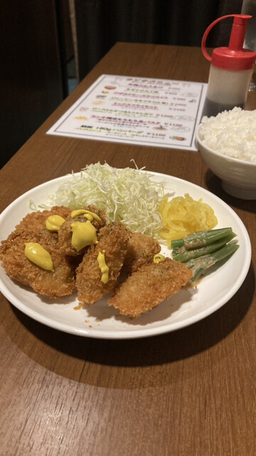 牡蠣フライ定食を頼むと1個につき100円で追加できます。