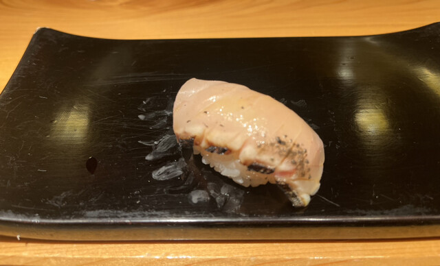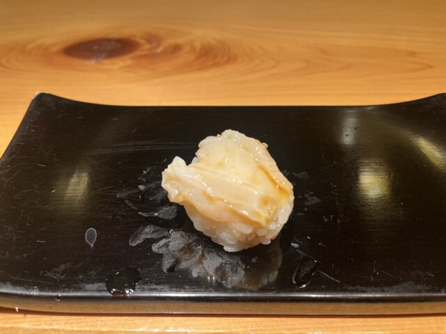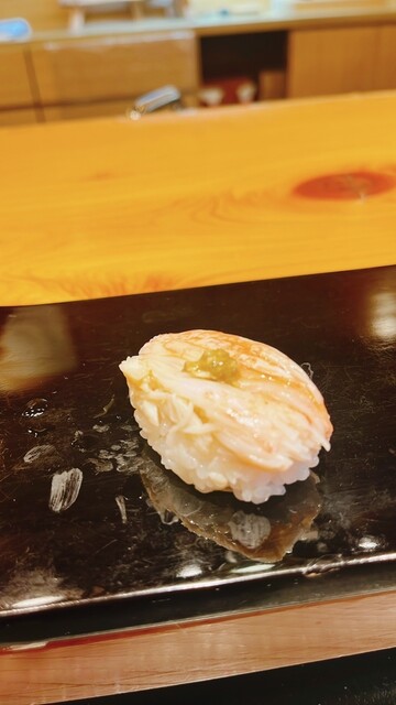 アカイカは必ず一巻目に出てきて、このキレイに包丁の入った甘い身にお塩がふられたアカイカを食べると、そうそうこれこれ!とテンションが上がります。やっぱり美味しいなぁ。