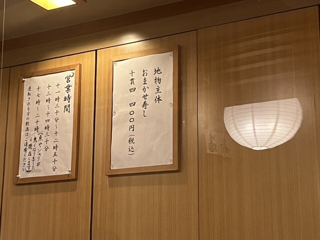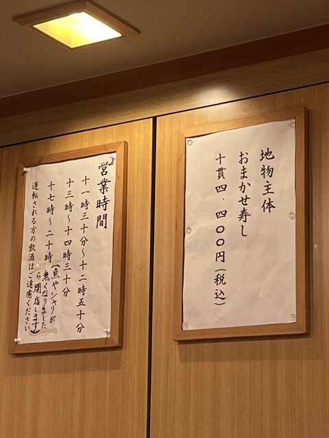 コースはおまかせ寿し 10貫 4,400円のみ。