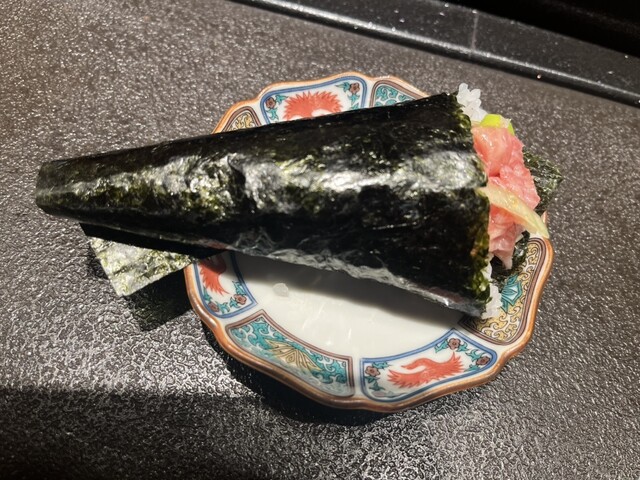 コースの後、単品メニューを聞いてもらえますが、ここでの必食は、ネギトロ手巻き!