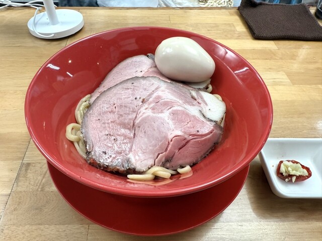 スープに合わせるいつもの中太ちぢれ麺、デフォルトのチャーシュー、そして単体でも十二分に美味しい桃ニクチャーシュー、どれもスープと交互に口に運びながら美味しさを噛み締めた。