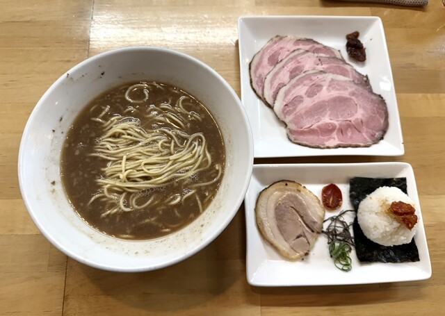正直なくてもいいと毎度思いながら、味変を楽しませてくれる別皿の具材もアップデートされており、チャーシューは炙られ、おにぎりにはドラゴンチャンジャが乗っていた。