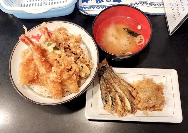 天丼(ご飯大盛り)、ナス天、シイタケ天