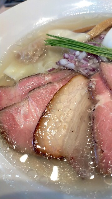チャーシューは肩ロースが3枚にバラが2枚。低温調理でしょうか。肩ロースにはパストラミみたいな胡椒がかかってます。ややしっとり感もあり肉感もありとても美味しいですね。バラ肉はとろける美味しさです♪