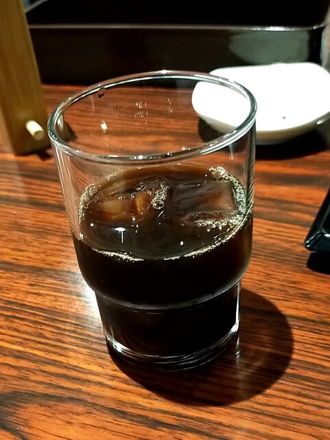 食後のアイスコーヒーもセルフですが無料飲み放題。お腹いっぱいなので半分いただきました。美味しかったです。