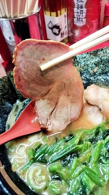 チャーシューは3枚。豚肩ロースの吊るし焼き。見た目はレアですがしっかりスモーキー♪