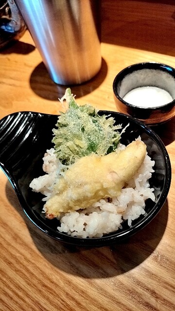 鶏天は柔らかく大葉も風味がいい。ご飯は雑穀米。スープをかければ簡易天丼。美味しかったです♪