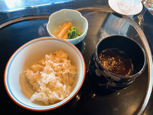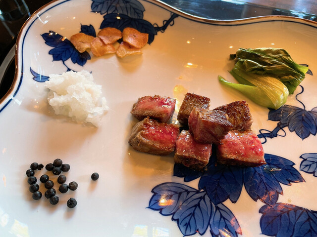ランチで前菜、スープ、魚、肉、デザートのコースをいただきました。シェフが目の前で調理してくれる形式で見ているだけでも楽しいです。魚や肉は素材が良質なのに加え、味付けや薬味にもこだわりがあってとても美味しかったです。