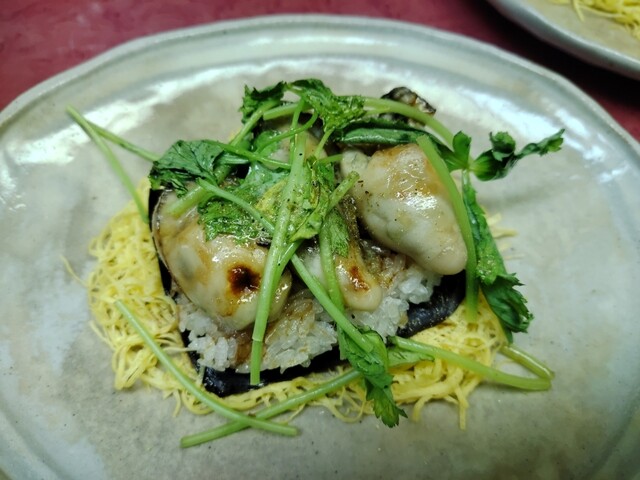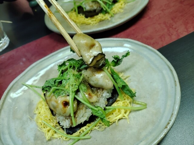 お腹満腹で苦しくなってきた頃に〆の牡蠣飯