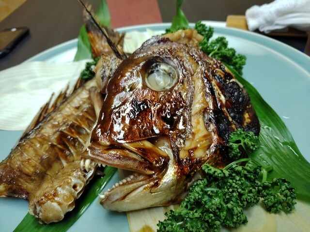 )お腹も落ち着いて来た頃にまさかの30㎝はあろうか、の皿に焼き魚がドーン2人でこの量は…。だけど美味しかったので平らげちゃいました