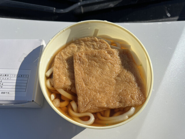 そして今回のお目当ての川鉄計量器製のうどん販売機。新潟にもあった富士電機製のものと違って、傾けて湯切りをするので、具が動がないため出来上がりがキレイです。麺はよくあるようなパサパサしたものではなくしっとりとした本格派でした、お揚げも2枚入っていて甘辛くて美味しいです。揚げの下にかまぼこが2枚入ってました。後で知ったのですが、この自販機は山形県天童市のアメヤさんからお嫁入りしてきたものだそうです。