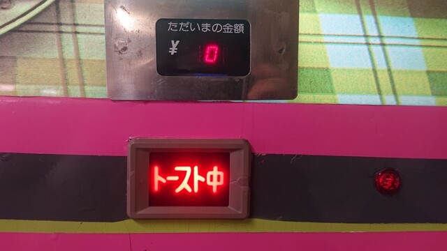 お金を入れて、ボタンを押すとトースト中というランプがついて、加熱を始めました。