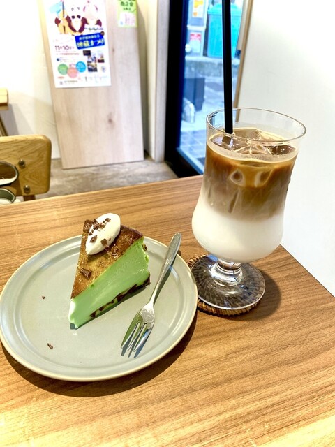 お目当てのチョコミントバスクチーズケーキとアイスカフェラテをオーダー