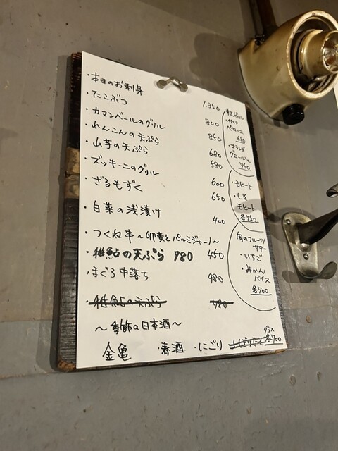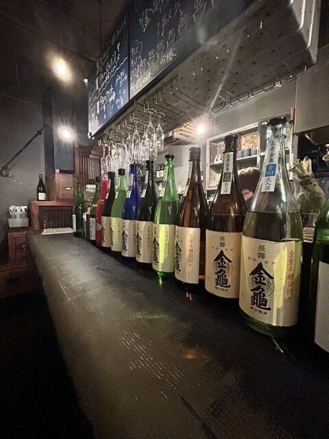 日本酒は金亀の精米歩合の違うものが揃っていて、60にしました。カウンターの1番端に一升瓶に入った金亀の仕込み水がチェイサーとして置いていました。