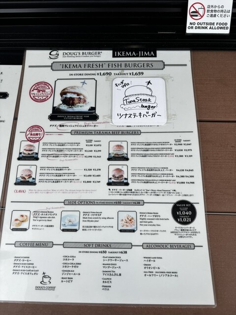 肉とチーズの組み合わせに惹かれ、ダグズ・プレミアム多良間牛ノーベジチーズバーガーを選択です。