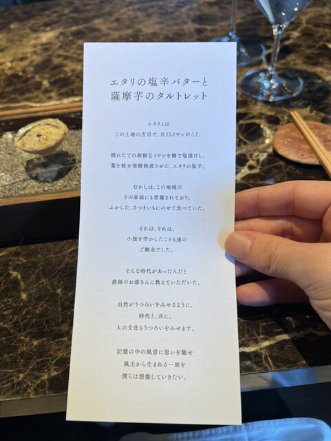 ○エタリ(片口イワシ)の塩辛バターと薩摩芋のタルトレット