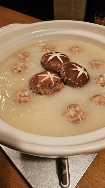 続いて、白濁した優しいスープに浮かぶ肉団子と椎茸。