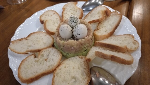 9品のお料理に8種のワイン、しかも内赤2種、白2種は飲み放題で税込7000円!という恐るべきコスパ。大皿で取分けの提供でしたが、お料理はどれも美味しく、ワインもさすがシニアソムリエセレクトなだけあってペアリングもバッチリでした。