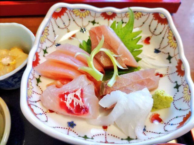 平日限定定食メニューから私は刺身定食を、連れは日替わり定食をチョイス。