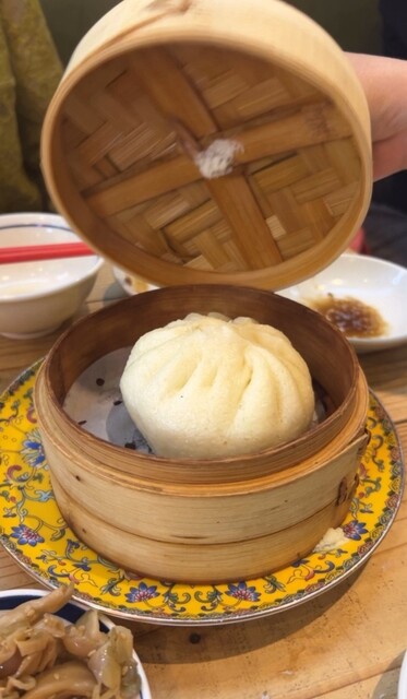 箸休めには「椎茸と青梗菜の肉まん」。見た目はほっこり、味はしっかり。青梗菜がゴロゴロ入っていて、野菜欲も満たされるヘルシーな一品でした。