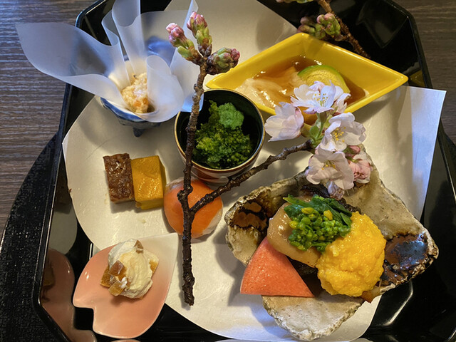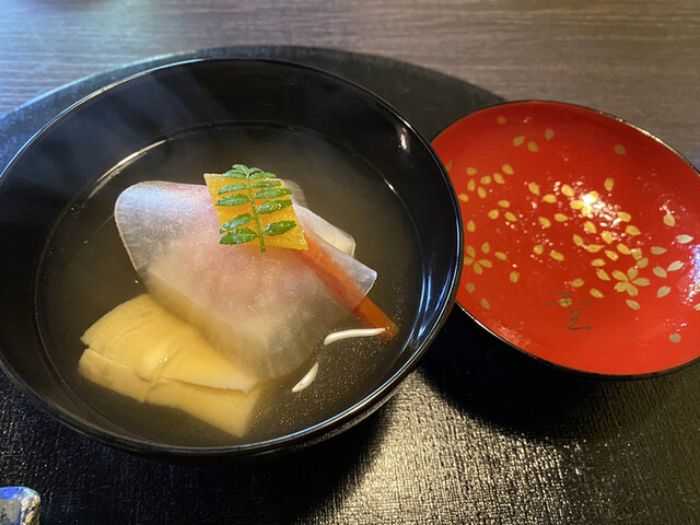 わさびの葉が入ったわらび餅とホタルイカのぬた