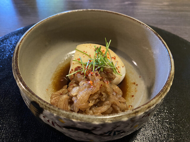 名古屋コーチンの温泉卵と牛肉のすき焼き風