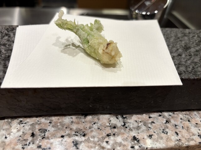 春を感じる山菜とたけのこは天ぷらで食べると、とにかく香りが素晴らしいです甘鯛の鱗揚げもカリカリで身はふっくらです