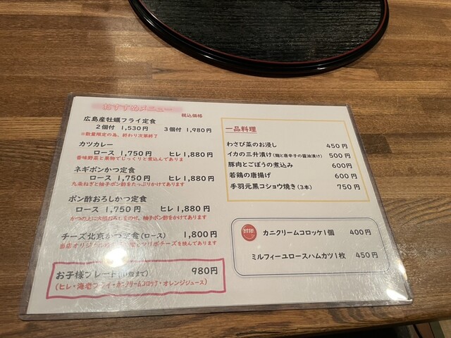 メニューから私はロースかつ定食小100g(税込1,300円)を息子はロースかつ定食中120g(1,500円)を注文しました。
