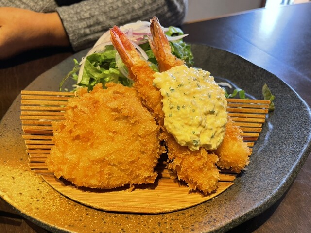 妻のミックスフライのエビフライはサクサクプリプリで、ヒレカツも柔らかくてジューシーで美味しかったそうです。