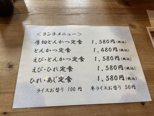 メニューから妻はえび・ひれ定食(税込1,380円)を私は腹八分目黒豚ロースかつ定食(税込1,660円)を注文しました。
