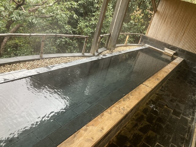 伊豆高原の浮山温泉郷にある6室だけの小さな旅館。各部屋に露天風呂があり、居間は和室、寝室はベッド。食事は別個室、お風呂も時間制貸切なので、チェックインしたら他の宿泊客と顔を合わすこともなく本当にゆったりできる静かな良い宿です。