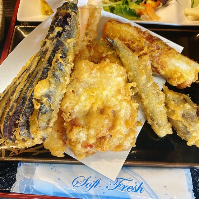 えび天3つ、ピーマン、フグ、ナス、さつまいも