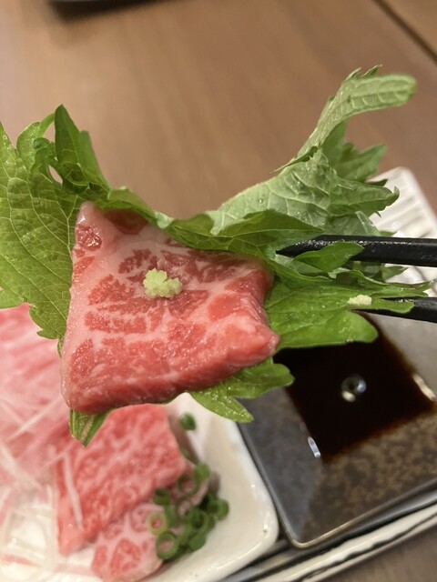 さあメインの登場です。本日の部位は、ランプとミスジだそうです。神々しい焼き色と鼻をくすぐる焼けたお肉の香りと、まず五感で楽しませて頂きました。それでは、実食。両方の部位もと脂が甘い‼️そして柔らかい‼️その一言です。(貧乏舌なので2つのお肉の違いは、分かりませんでした)兎に角美味でした。あまりお腹が空いていませんでしたが、二人でペロッと完食でした。
