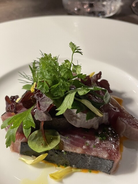 余市駅から徒歩3分のオーベルジュ。ワイン好きのお客様が席についての一斉スタートのディナー。高齢のカップルが3組。若い女子4人組に我々。皆 行儀良く、人数もこじんまりしていて 席と席も離れていて隣の会話...