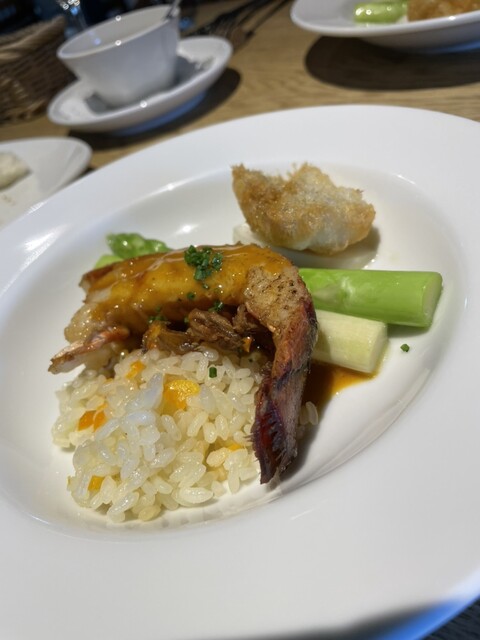 岩手県産かきのムニエル焦がしバターソース.オマールエビのポワレと穴子のフリット オマール海老のソース. 牛ヒレ肉のステーキ トリフ風味 赤ワインソース.デザートは 選択でき 我々は栗のクレームブリュレバニラアイス添.苺のミルフィーユバニラアイス添を選択.7にはカラフェの白と赤. お会計待つ間に 目にした席にある花も綺麗