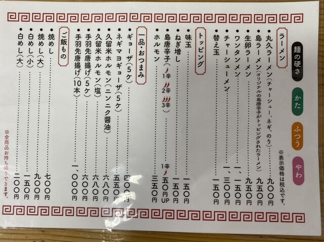 水と薬味のセルフコーナーが設置され、店内中央に横並びの席が増えて、奥に座敷、左に屋台席?も出来てかなり席が増えてました。