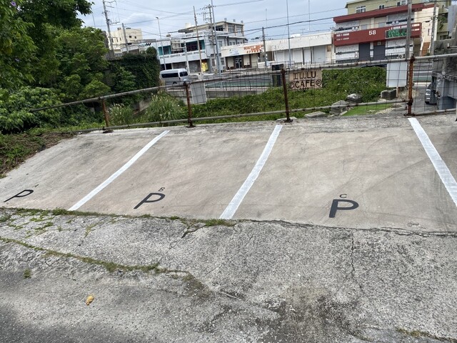 下の駐車場の上にあり、階段で降りたら繋がってます。