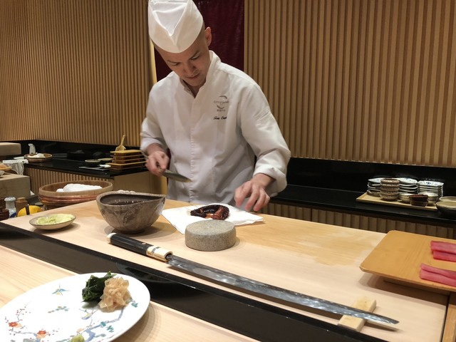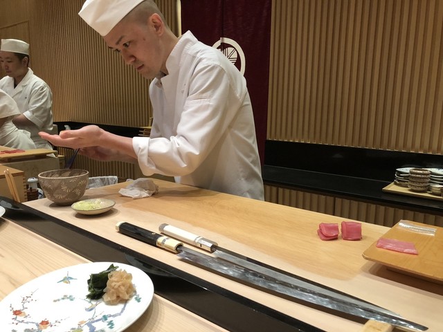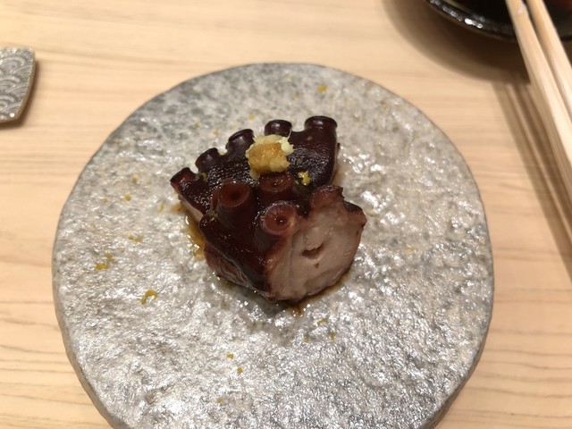 僕選ぶのは昼のおまかせコース「雪」です。おつまみと握りは全部20品ぐらいです。おつまみの中で一番すきのはタコです!とても柔らかい、素晴らしい味でした。寿司の中で一番すきのは赤身、大トロも美味しいです!料理長大隅さんは良い人で、全部握りの材料は英語で説明した。最後卵の味はプリンみたいです。日本からの果物も美味いですよ。